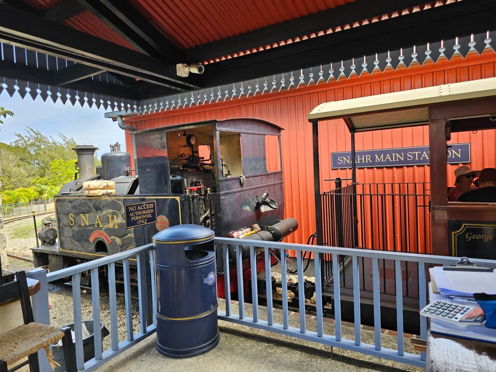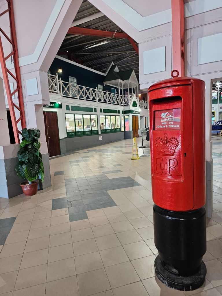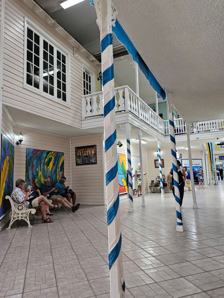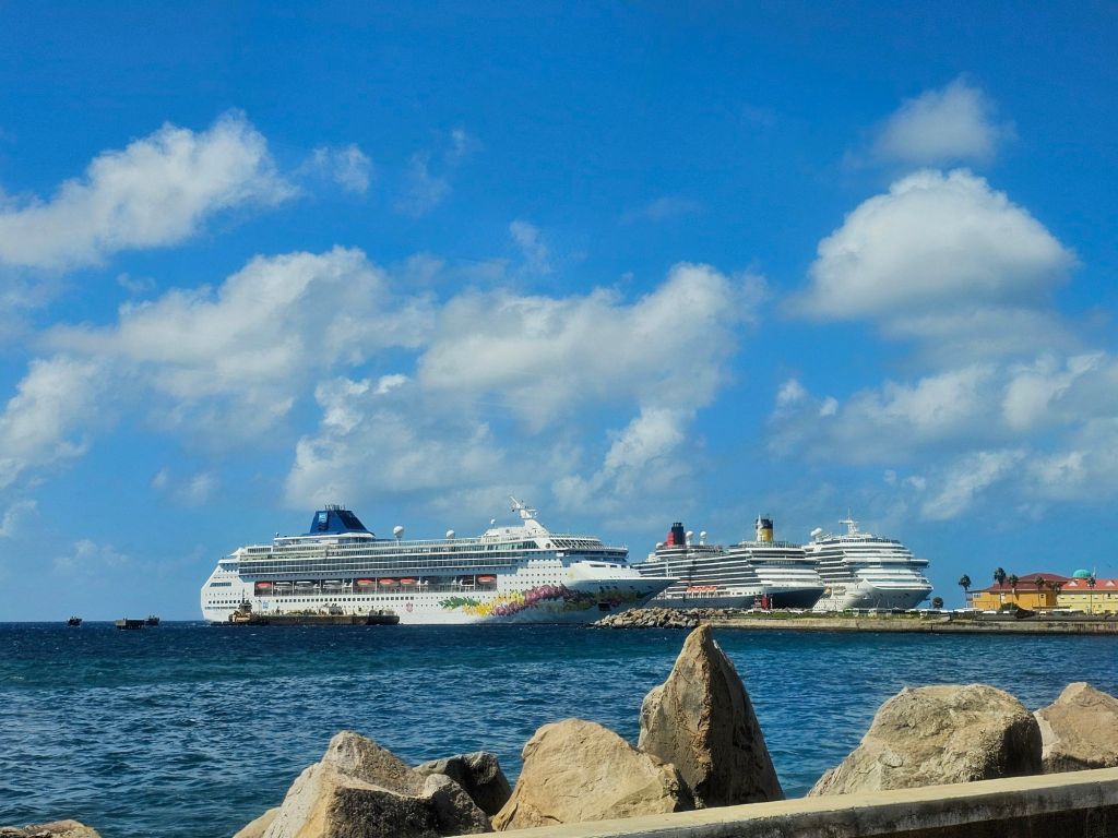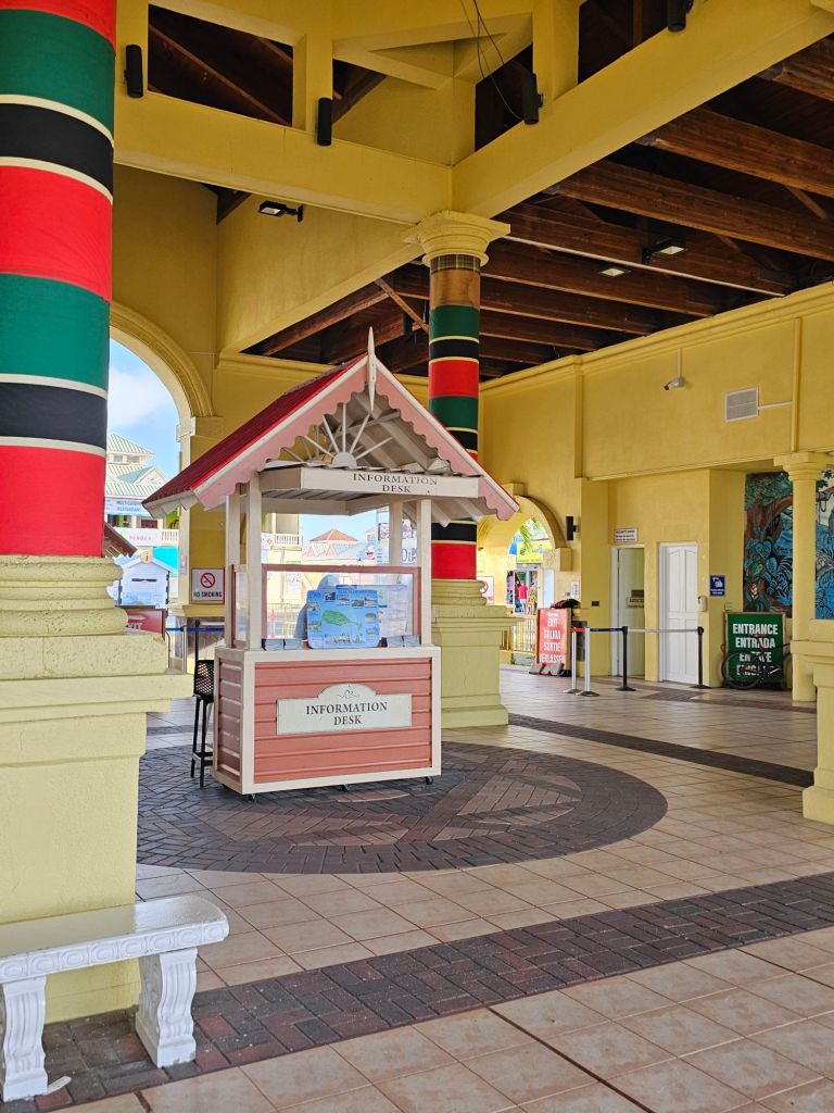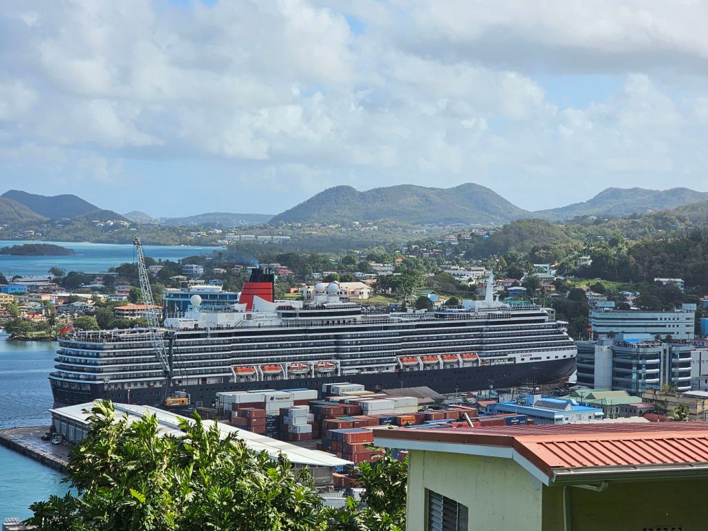 Da ich einen früh startenden Ausflug – gebucht über Cunard – mit dem schönen Titel „Easy St.Kitts“ hatte, war ich eine der ersten, die nach einem frühen Kabinenfrühstück das Schiff verlassen habe und kam auf einen noch ruhigen Pier. St. Kitts und Nevis https://de.wikipedia.org/wiki/St._Kitts_und_Nevis ist eines der Länder, in denen König Charles III. noch Staatsoberhaupt des kleinen seit 1983 unabhängigen Staates mit etwas über 51.000 Einwohner*innen auf den beiden zur Föderation gehörenden Inseln ist. Im Oktober 2025 hat das Land auch ein eigenes ETA, das rund 20 $ kostet, eingeführt, hat aber für Kreuzfahrttagesgäste Sonderregelungen: diese müssen neben der Schiffskarte auch einen amtlichen Lichtbildausweis (mein Personalausweis war ausreichend) vorlegen.