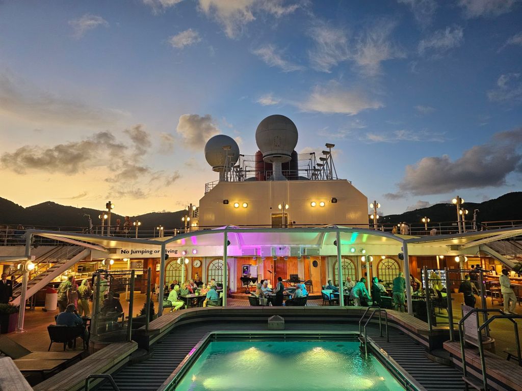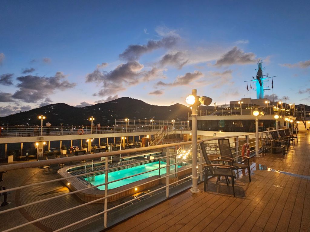 Richtung Karibik wurde man abends erinnert, wenn man die Uhr zurückstellen muss, nach einem Seetag, an dem man zwischen zahlreichen Angeboten für Körper und Kopf wählen konnte, aber immer auch einfach nur „nichts“ tun konnte, egal ob an Deck oder anderswo.