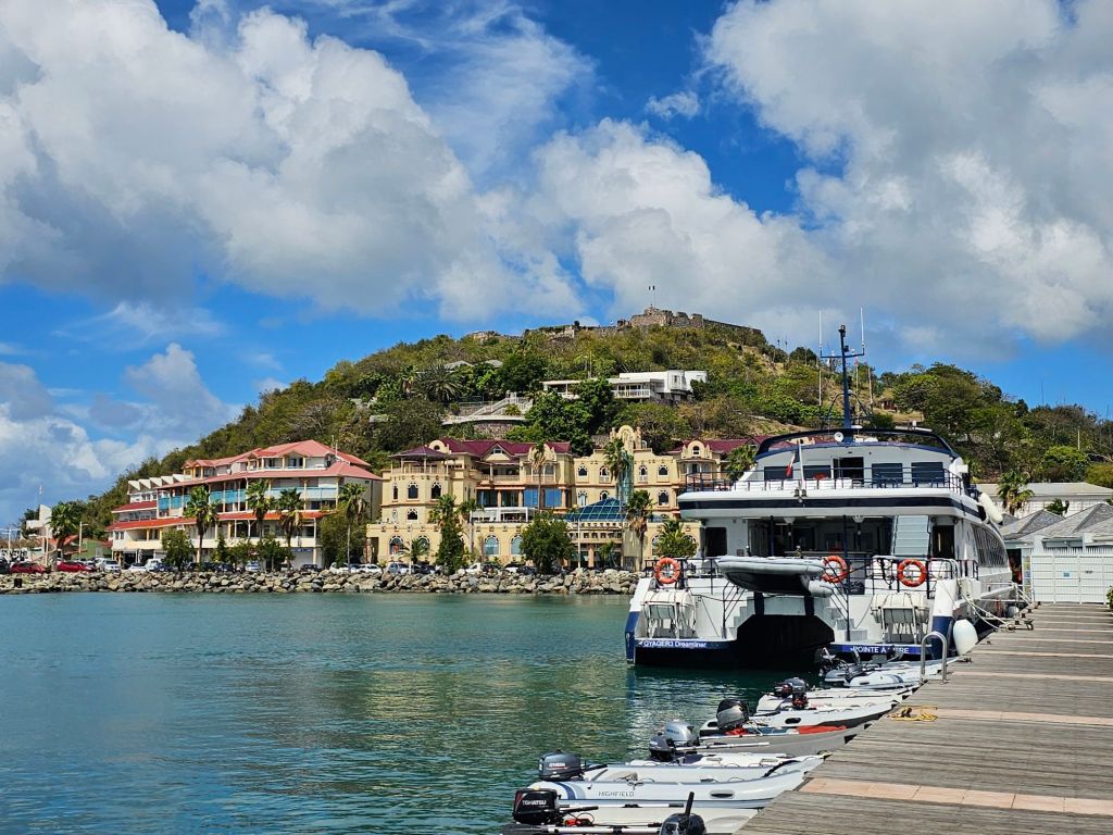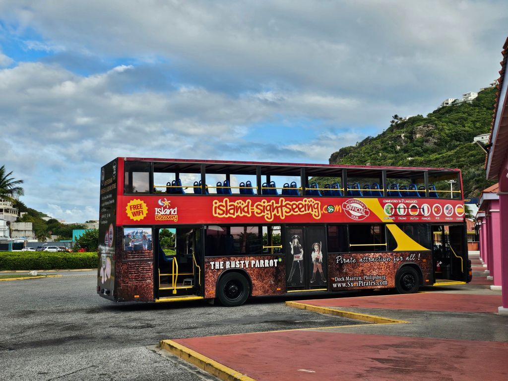 In St.Martin https://de.wikipedia.org/wiki/St._Martin_(Insel) hatte ich eigentlich einen Ausflug über Shore Excursions Group geplant (Discover St. Maarten), der aber eine Woche vorher abgesagt wurde. Stattdessen habe ich an Bord kurzfristig die „Open Air Double Decker Tour“ von Island Sightseeing gebucht. Es war von zwei Zeiten nur noch die verfügbar, die am späten Vormittag startete, so dass ich den Tag mit einem entspannten Frühstück im Britannia beginnen konnte.