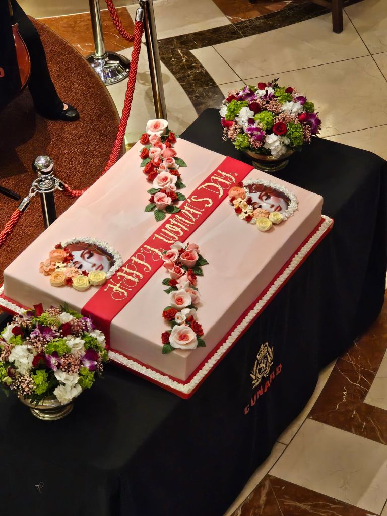 3. Das hätten sich Clara Zetkin und ihre Genossinnen 1910, als sie im Kampf um das Wahlrecht und die Gleichberechtigung von Frauen den Internationalen Frauentag einführten, vermutlich auch nicht vorstellen können, dass 2026 der 8.März im Tagesprogramm und in der Ansprache des Kapitäns der Frauentag ebenso wie in einer besonderen Torte gewürdigt wird. Und das Schiff hat einige mehr Frauen in Führungspositionen als sonst auf See, u.a. mit Staff Captain Martel Fursdon, die in einem spannenden Insight mehr über das Schiff, ihre Rolle an Bord und wie sie dort hingekommen ist, berichtet hat.
