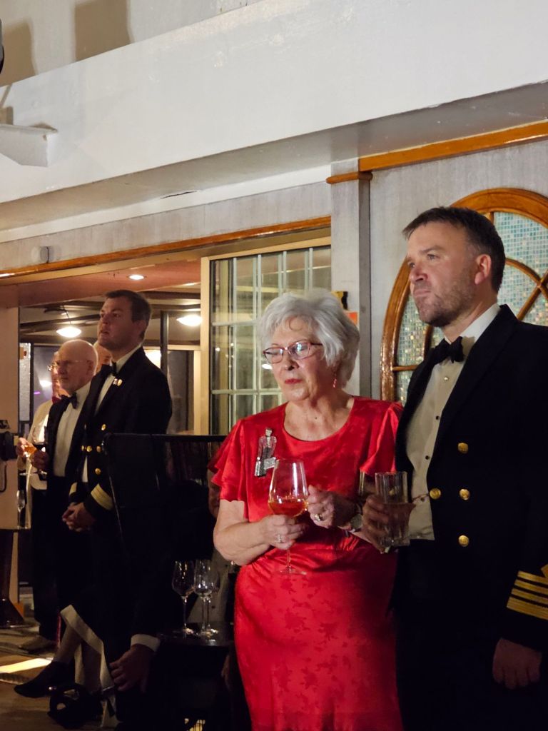 Aber so würde ich immerhin noch am Sonntag Abend wieder in Berlin sein – und muss trotzdem am Sonntag nach dem Anlegen in Southampton als eine der ersten von Bord und mit Shuttle nach LHR Terminal 2 (statt 5). Und so ging es in den letzten Gala-Abend und den folgenden, letzten Seetag mit Kofferpacken und Abschiednehmen vom Schiff.