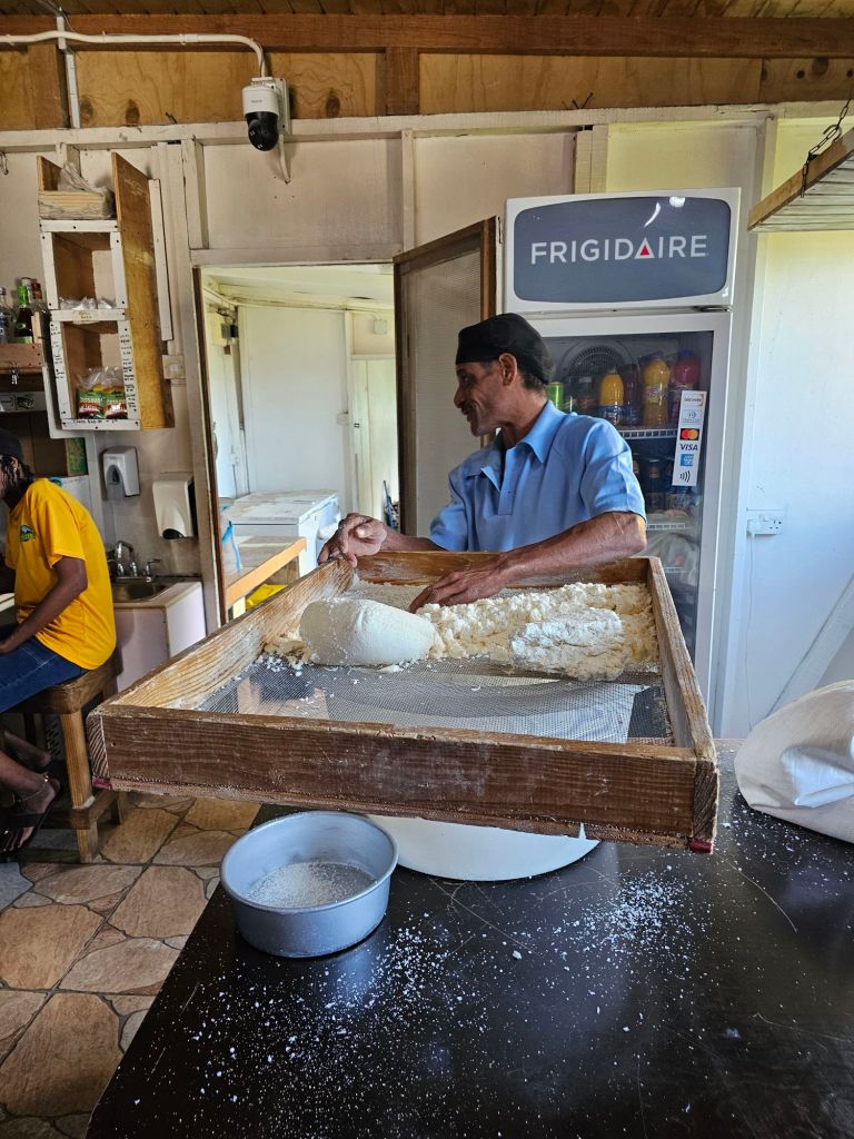 In einer Kassava-Bäckerei gab es noch kein frisches Brot, aber wir konnten die Herstellung des Mehl in reiner Handarbeit beobachten.