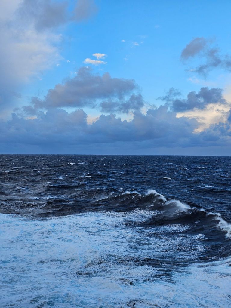 Der Kapitän informierte über das Wetter der kommenden drei Seetage und erinnerte daran, dass spätestens jetzt angesichts der Winde und hohen Wellen in den kommenden 24 Stunden ein guter Zeitpunkt sei, Mittel gegen Seekrankheit zu nehmen.