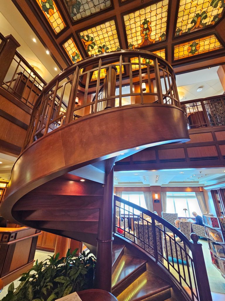 1. Es ist grundsätzlich gut, dass es auf der Queen Victoria eine grosse Bibliothek gibt. Dort gibt es auch gut sortierte Bereiche mit anderen Sprachen als Englisch, zum Beispiel Deutsch, und neben den Hardcovern zur Leihe auch einen Bereich mit Taschenbüchern. Es ist schade, wie veraltet und schlecht sortiert der Bereich „Royalty“ ist. Das neueste Buch war von 2018, die zahlreichen neuen Bücher von Valentine Low, Andrew Lownie, Katie Nicols, Tina Brown, Catherine Meyer, Robert Hardman oder Robert Jobson fehlen genauso wie die meiner Meinung bisher beste Biographie über Elizabeth II. von Inger Merete Hobbelstad. Selbst im Bookshop gibt es die neuesten Bücher nicht zu kaufen. Für mich war das kein Problem, weil ich auf Reisen mittlerweile gerne die E-Book Variante nutze und damit im Zweifel ohne viel Gewicht Zugang zu guten Büchern habe, aber das selbst die neuesten Bücher von Robert Jobson weder in der Bibliothek noch im Bookshop waren, der bei dieser Reise als Speaker vier Sessions gestaltet hat, ist eine vertane Gelegenheit. Die Speaker, die oft ein aktuelles Buch vermarkten, weisen deshalb schon auf die Bestellung ihrer Bücher bei Amazon hin – aber das geht doch besser.